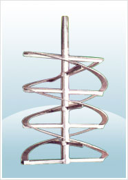 Axis flow mode, the fluid generally ascend along the vessel wall with helical direction, then converge to the center concave, and form up and down convecsion circulation, simultaneously strong anti-adhesion. Be applied to the high viscosity or power fluid operation of blend, heat transfer, reaction, solution. The shape and quantity of helix-bands in basis on the vessel figure and liquid level. |